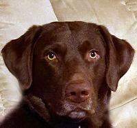 Marley is a gorgeous chocolate lab with stunning golden eyes.